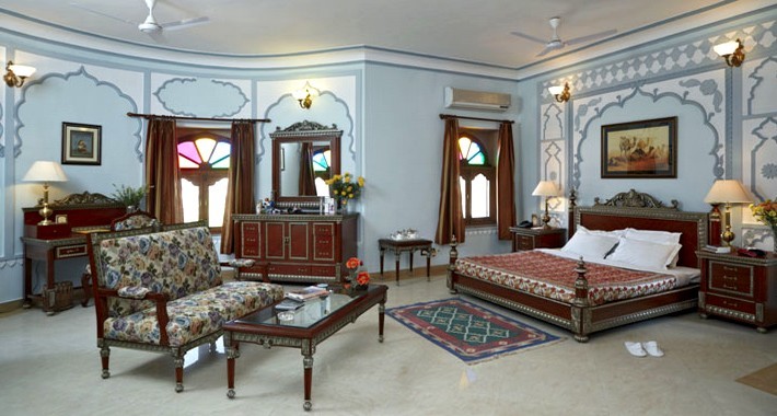 Perché sur les bords du désert du Thar, le fort de Khimshar fût construit au XVIe siècle pour protéger la ville des envahisseurs. Les remparts, entourés de magnifiques jardins, se dressent fièrement depuis plus de 400 ans face aux étendues désertiques.