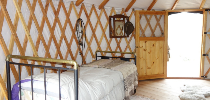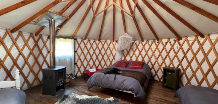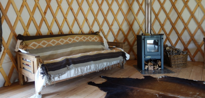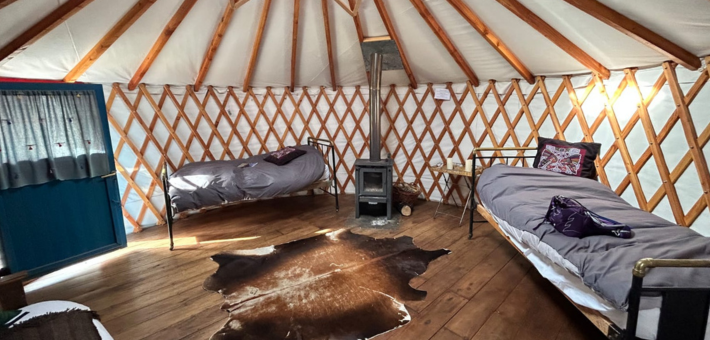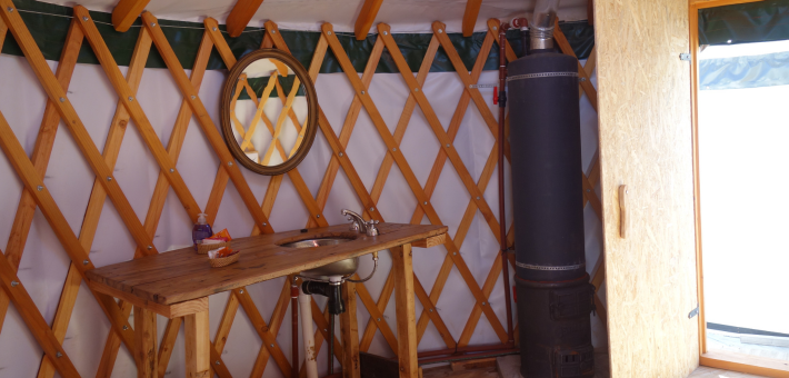 Yourtes pouvant accueillir 2 à 3 personnes, équipées de chauffage et d'une salle de bain privative.