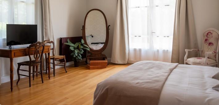 Seules 2 chambres offrent la possibilité d'avoir des lits séparés : la chambre duplex "Marine" composée de 2 lits simples au rez de chaussée et d'un lit double à l'étage, ainsi que la chambre "Céladon" composée d'un lit double et d'un canapé convertible.