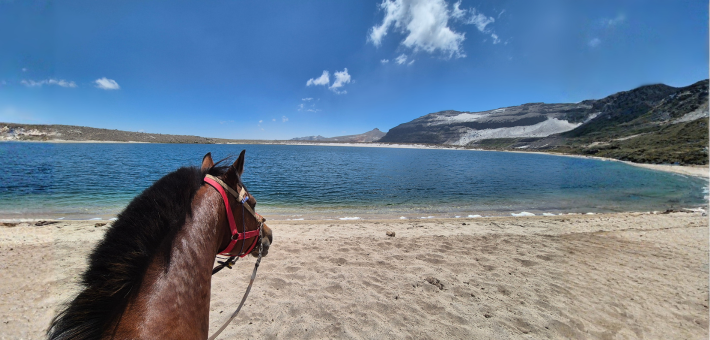 Ce matin, nous laissons nos chevaux de bât et prenons la direction de la lagune Caracol, où nous arrivons en milieu de journée.