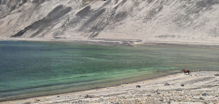 Aujourd’hui, nous grimpons à travers dunes et prairies, avant de descendre dans un ravin qui nous mène à un site archéologique, qui nous témoigne des anciennes présences humaines dans cette zone isolée. Nous atteignons ensuite une zone géothermique, nous pouvons observer des geysers et eaux chaudes, un panorama incroyable. C'est l'étape la plus haute du parcours, autour des 3 000 mètres d'altitude. Il n’est pas rare d’y apercevoir des plaques de neige persistantes, même en dehors de la saison hivernale.