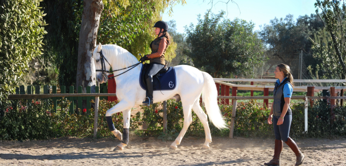 Ce séjour propose des cours en très petits groupes ainsi que des leçons privées, pour un accompagnement personnalisé. Les séances d’équitation et de dressage se déroulent matin et après-midi. Vous aurez également la possibilité d’assister aux entraînements des autres cavaliers lors du travail des chevaux andalous ou, pour les plus passionnés, de participer à des cours supplémentaires (en option).