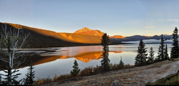 Nous continuons jusqu’au lac Ibex, dans un massif culminant, où nous montons le camp pour la nuit.