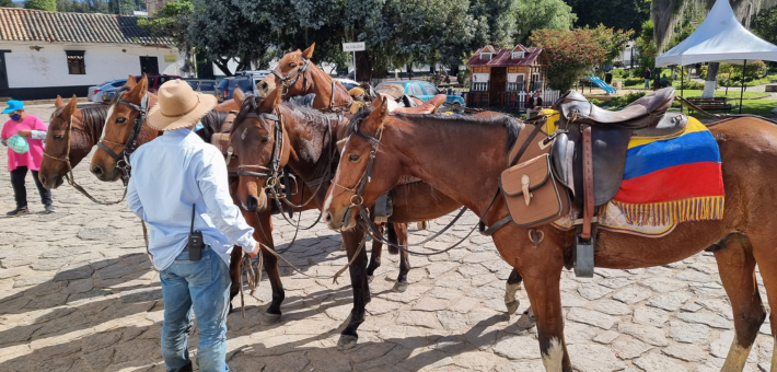 Ce matin, nous partons au nord de Villa de Leyva à cheval pour profiter des paysages et du climat très doux de la région. Nous pique-niquons au bord de l’un des nombreux ruisseaux qui traversent la zone.